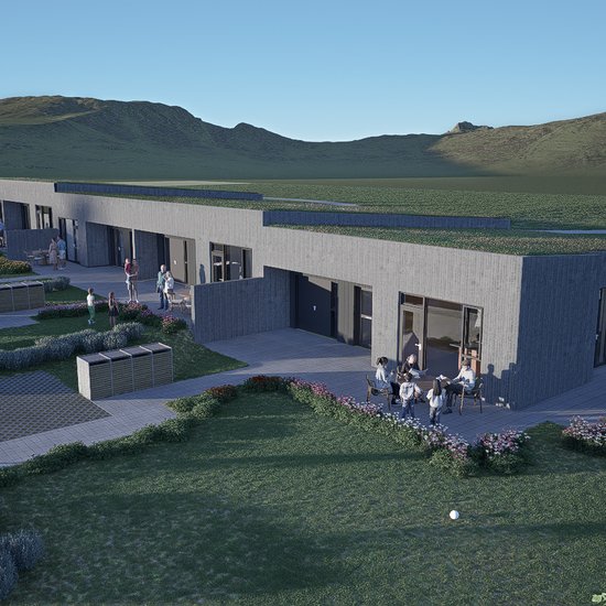 Framkvæmdum miðar vel og er gert ráð fyrir að húsin verði til afhendingar sumarið 2026.